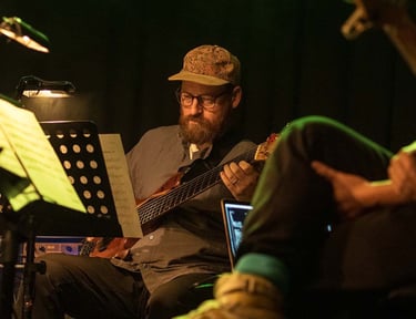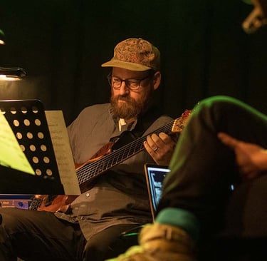 From the late 90s until late 2010s, he played saxophone and was one of the 4 composers in the punk/chamber/jazz band Gutbucket, with whom he toured internationally to twenty countries and 32 states over twenty years. For ten years, he musically directed the Asphalt Orchestra, an 8-piece next-generation avant-garde street band who debuted in long runs at the Lincoln Center Out of Doors Festival.